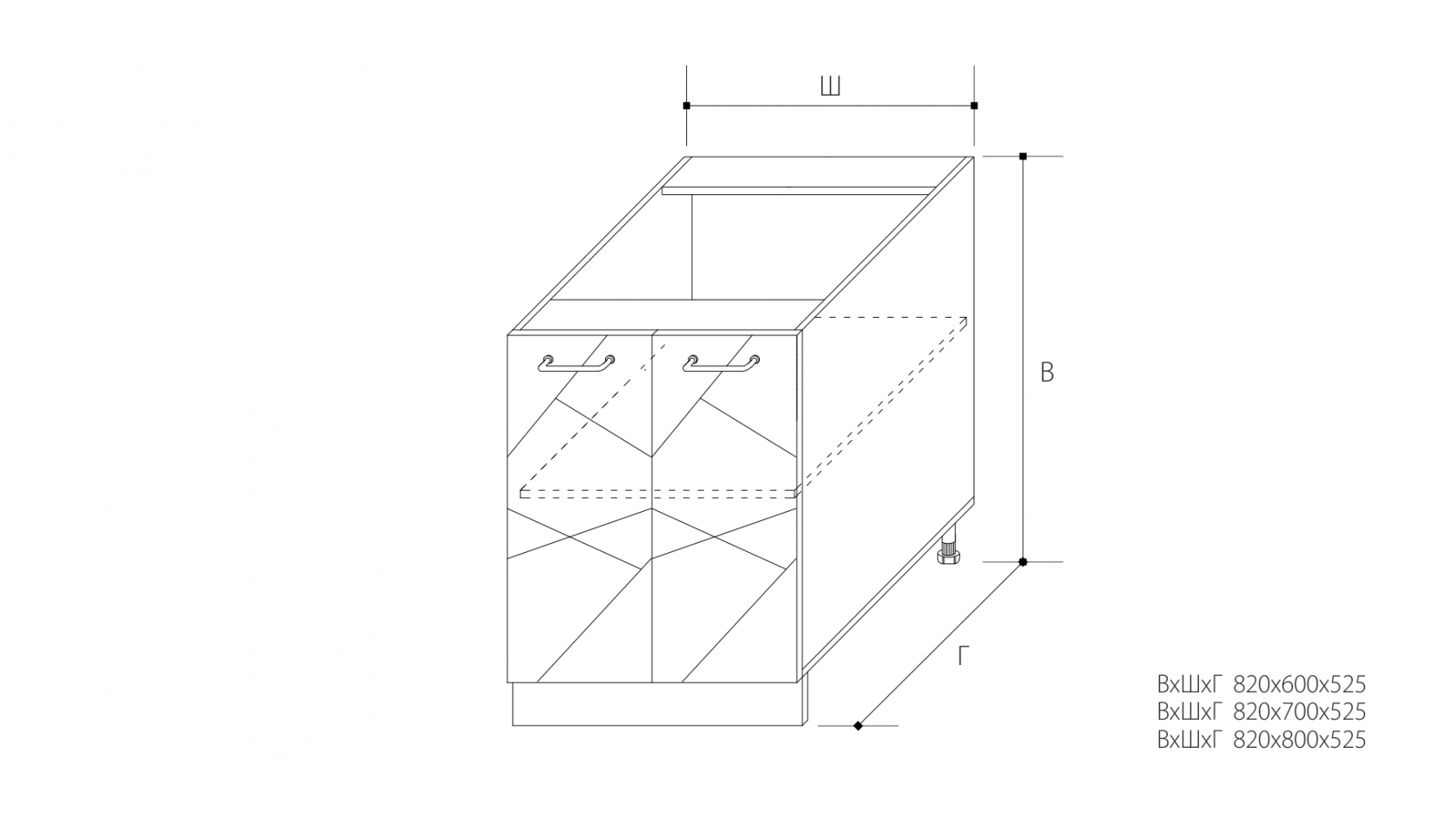 ВхШхГ: 820х800х525 мм.